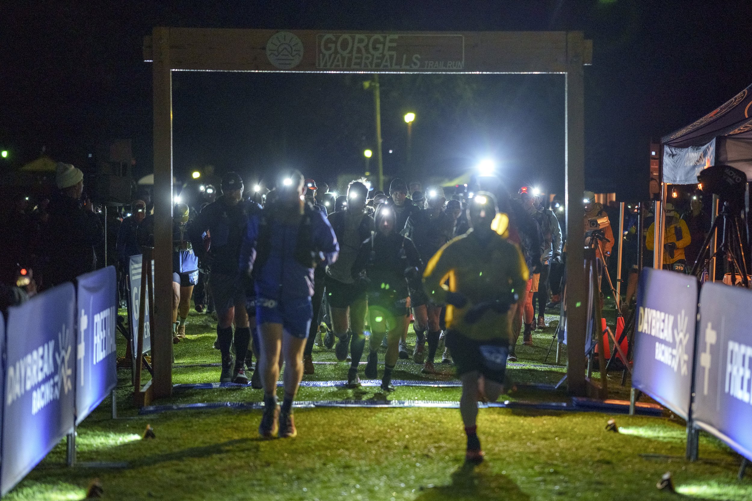 Gorge Waterfalls, formerly a Rain Shadow race event and now taken over by Freetrail and Day Break racing, offers the scenic 100 k, 50 k and 30 k trail races through the heart of the Columbia River Gorge. One of the most preeminent trail races in the Pacific Northwest, it is home to some of the greatest trail race events in the Pacific Northwest. After four years of cancellation and thousands of hours of trail restoration, after a major forest fire, the event was brought back in 2022 with the start/finish area along the banks of the Columbia River at Marine Park in Cascade locks.