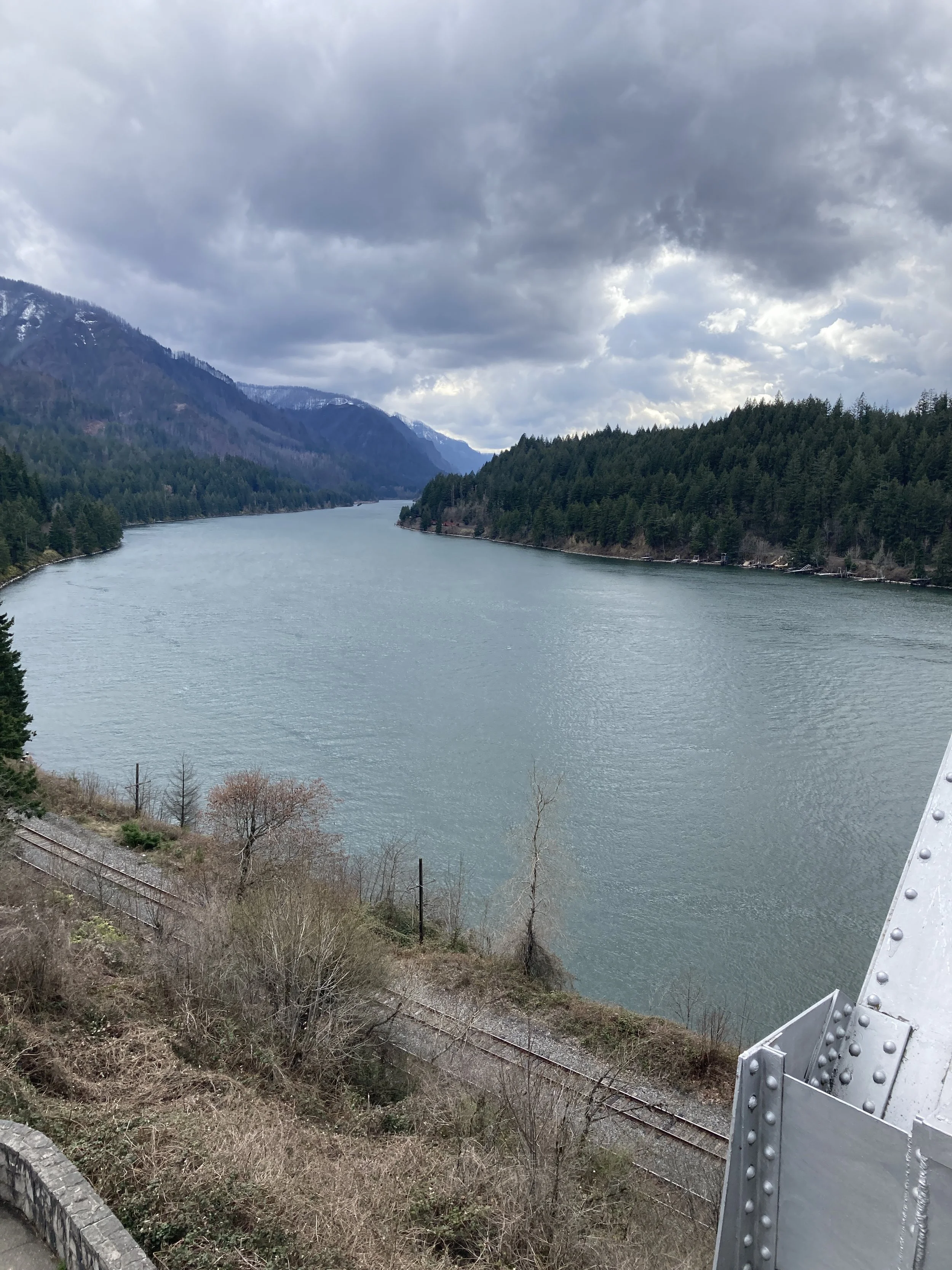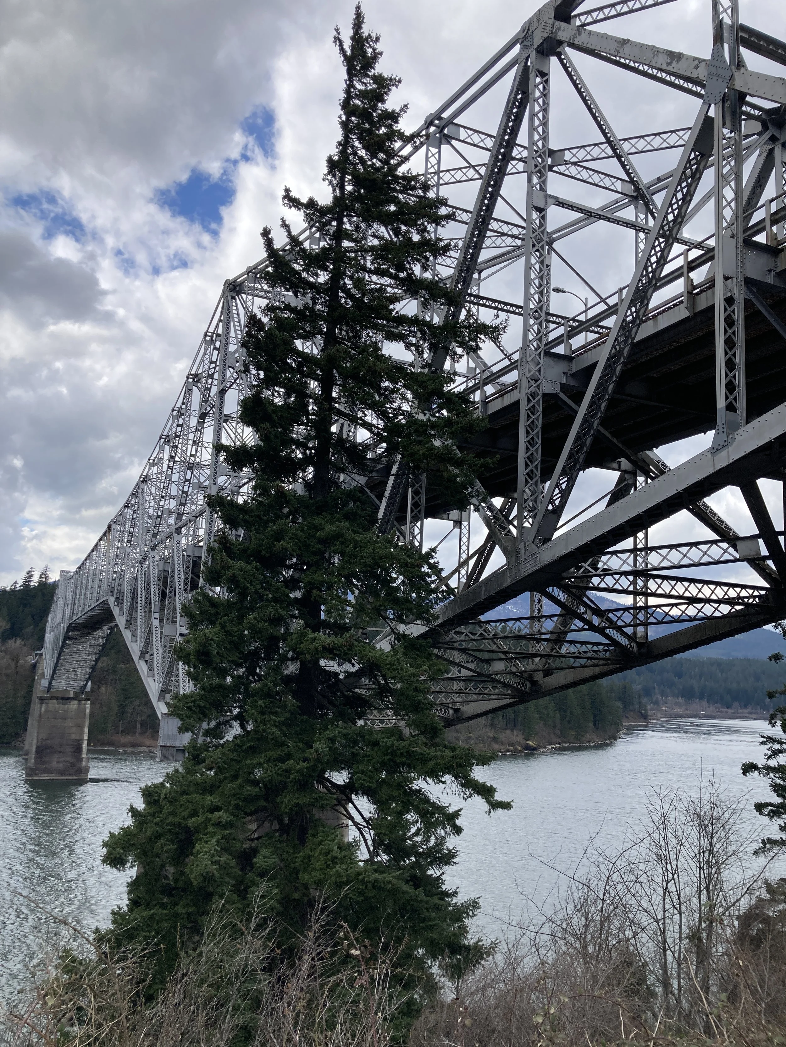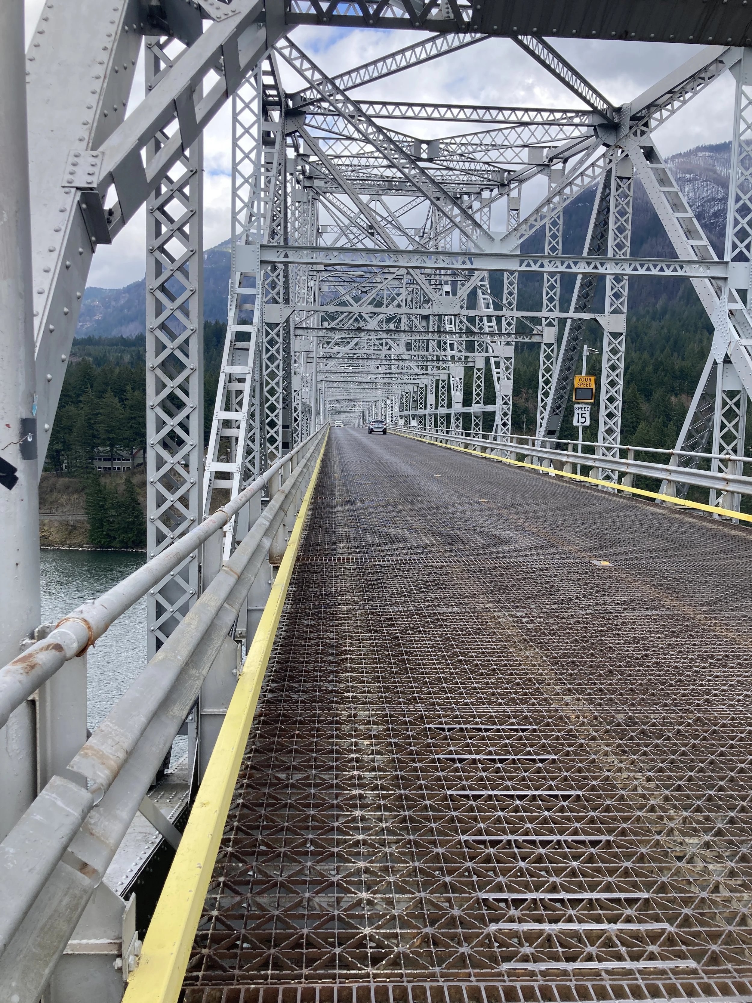 I walked across this iconic bridge on Thursday when I arrived to tour the town. It was a bit unnerving crossing the grated bridge, facing traffic as there was no pedestrian walkway. Pedestrians are allowed to walk across and you don't have to pay the toll. The bridge crosses over to Stevenson, Washington. There were some amazing views!