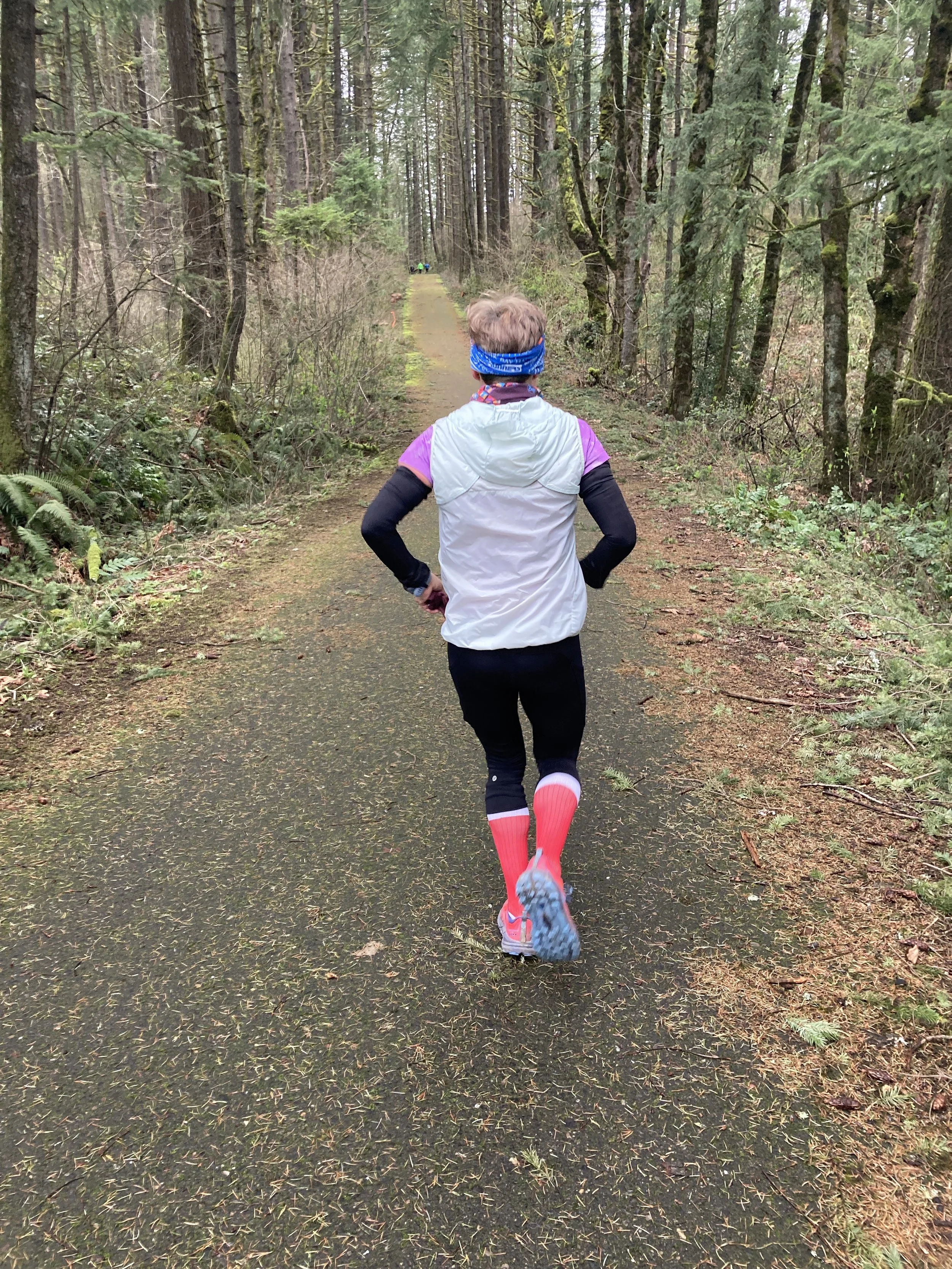 My reasons for going to Gorge Waterfalls? I booked this trip in January and had already paid for my flight and accommodations and there was no cancellation money back option. I wasn't able to drop down to the 30 or 50 km and couldn't of course, get a pregnancy deferral, so I had no choice but to try to finish the race and use it as a stepping stone to Fat dog 120 miler in August.