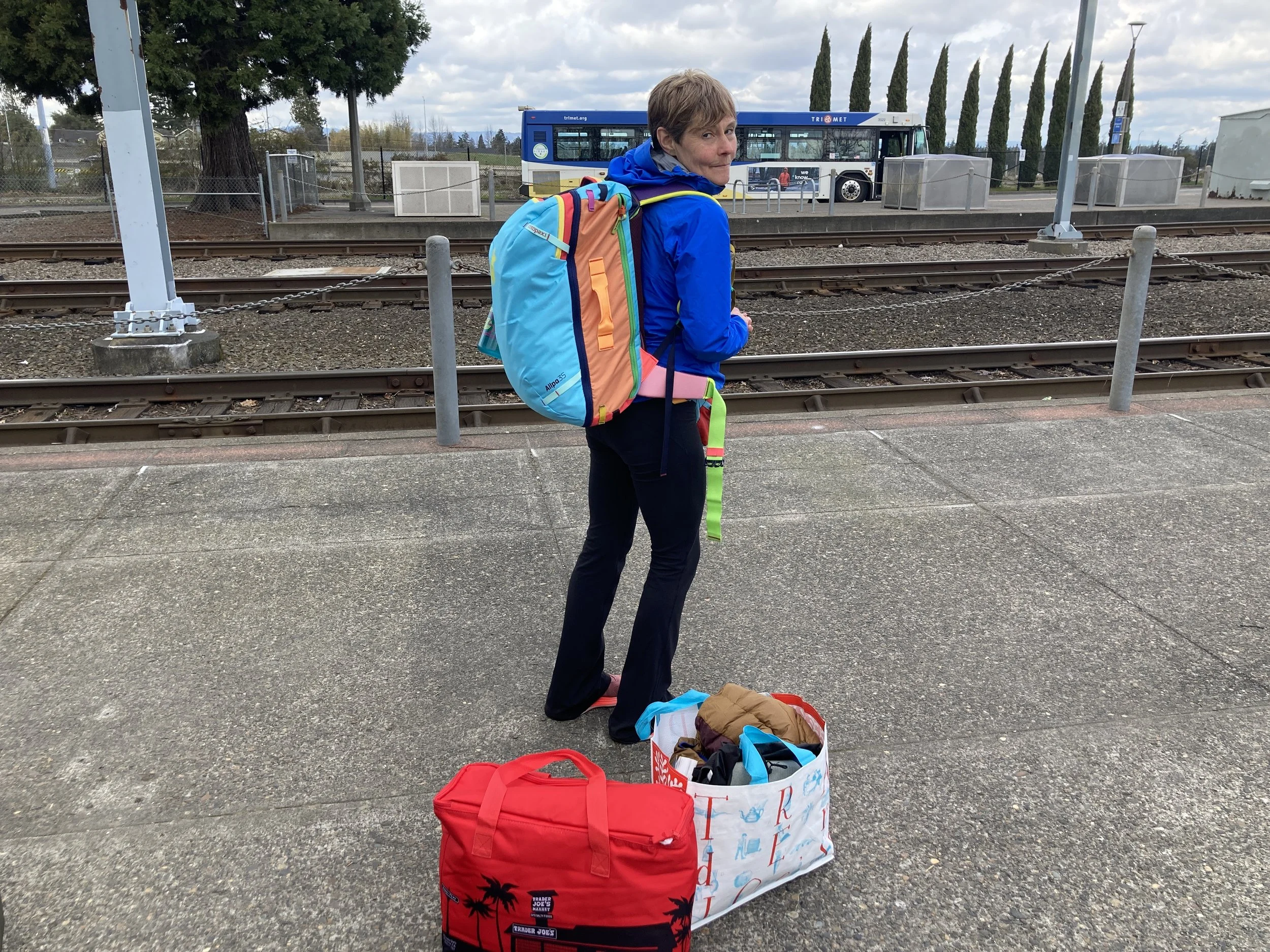 This was my first solo trip pre-pandemic flying from Victoria to Vancouver to Portland. I was feeling a bit rusty while travelling by plane. After a 15 minute flight delay I was escorted quickly off the plane by an Air Canada agent to get through US customs fast to make my tight connection. Thankfully I was travelling light, no checked baggage, with my new 35 litre Cotopaxi travel bag, so colourful and will never get lost. From Portland airport I took the MAX light rail train to catch a bus ( $10 USD ) to Cascade Locks. Pretty easy way to travel and cheap because I used Air Miles for my flight; total cost about $100 CAD to get there.