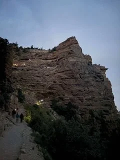 Night fell, and the trail was lit by my waist light. I prefer it over a headlamp for its lower beam and clearer path visibility. Bats swooped through the light—at first, I thought they were birds. It was mesmerizing, not scary. The canyon comes alive at night.