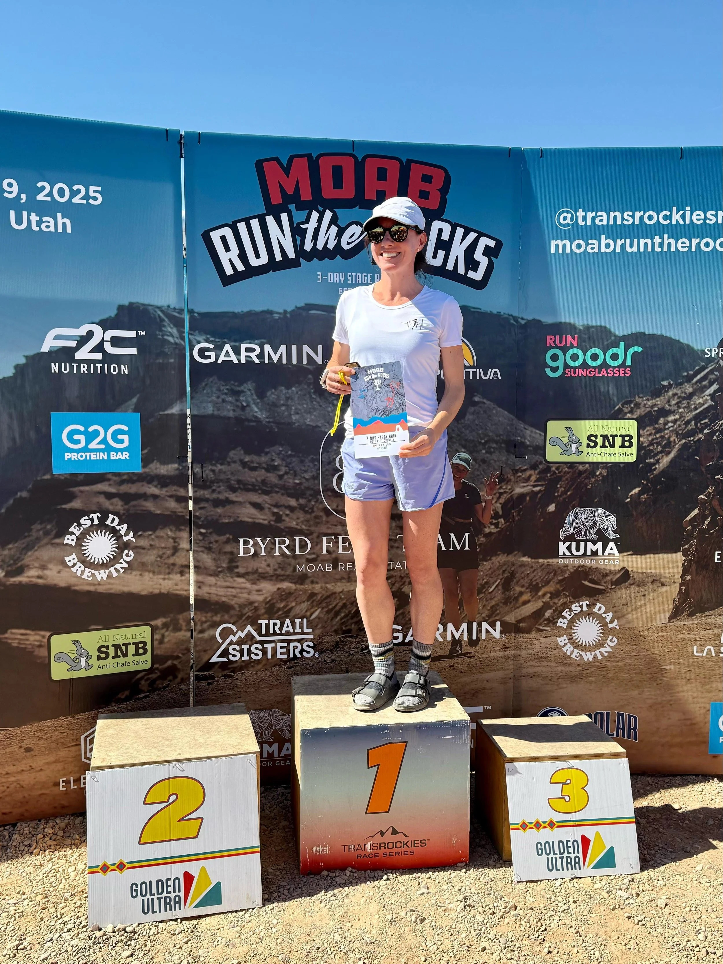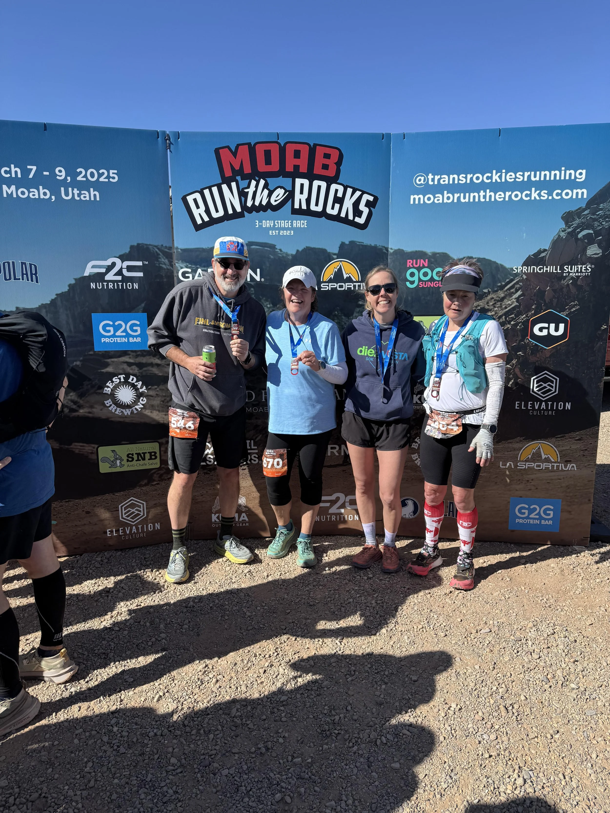A big thank you to my coach, Matt Cecil; Andie Pask, Victoria Movement Collective; Peak Endurance; Bad Ass Chicks Run Trails; Nikki Jomba for helping organize our amazing condo accommodation and vehicle; Lisa Bee for being our amazing chauffeur and "cat herder"; and Rhonda for being a superhero attending to a medical incident. Thank you to Houde (Kevin McDonald) and the TransRockies Running volunteers for a memorable three-day amazing adventure in Moab. Thank you to the various photographers on the race course . Congratulations to all who participated and finished . See you next year…?