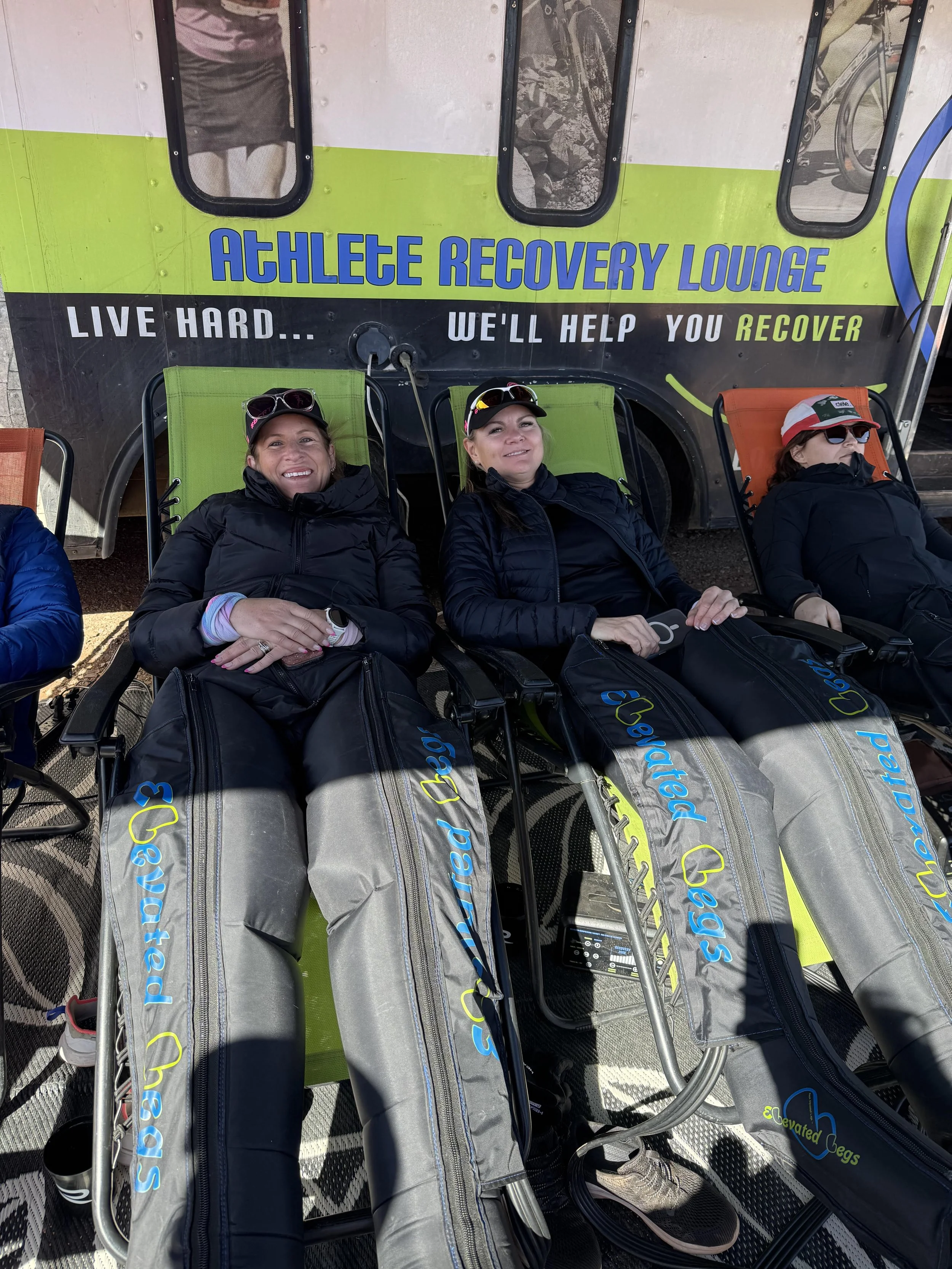 My race nutrition plan used mostly Tailwind nutrition, aiming for 200-300 calories per hour. Depending on how I felt, I might add in some solid food, but during this race weekend, I couldn’t manage it. I had worked with Andie Pask on my nutrition plan leading up to the race. However, I miscalculated my Tailwind intake by half on day one and realized I was likely under-fueled. Things went out the window later that day. I experienced a migraine headache, nausea, and vomiting after the race and couldn’t keep anything down. After taking two Advil with bubbly water, I found myself vomiting over the fence at the evening awards. I was so embarrassed, thinking people probably thought I’d had too many post-race beers, but I hadn’t had any. I think it was due to a combination of not enough electrolytes, too much sun, altitude, and heat from the post-race hot tub. In hindsight, I didn’t listen to my body and rest; instead, I pushed through because I didn’t want to miss out on the post-race awards and festivities. I went to bed early without any dinner.