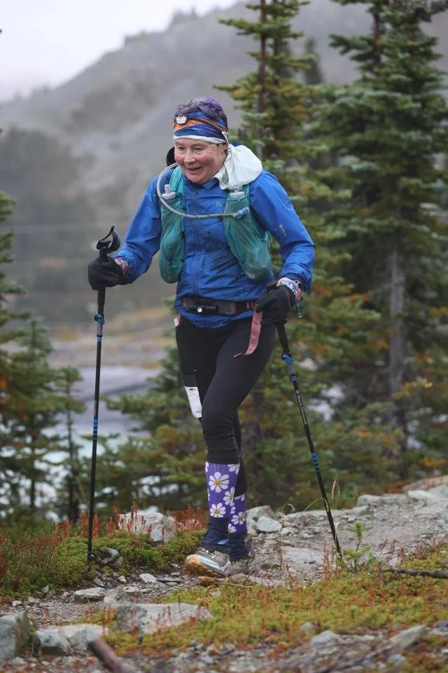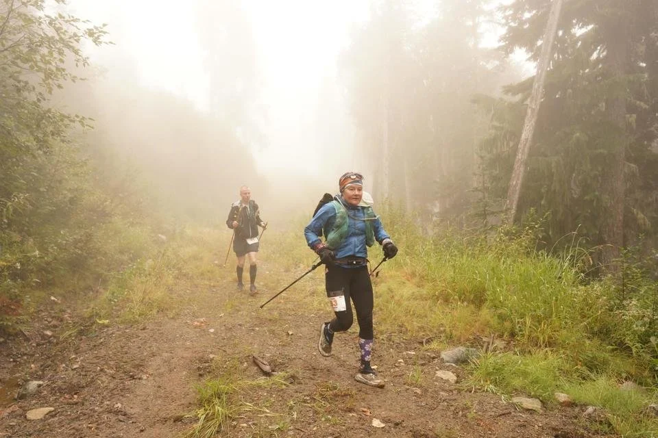 The trails were treacherous and steep, and I was grateful for my poles. I slipped backward a few times due to the slick conditions from the rain. I felt like I was pushing harder than I should have so early in the race. My legs were fatigued, and my breathing was heavy, but I felt okay—at least I was warm. It had stopped raining, but I kept my rain jacket on as the temperature dropped while we ascended to the exposed Here’s your race report with the additional details included:
